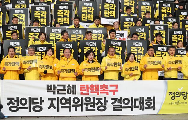 8日,對樸槿惠的彈劾草案在國會上正式被列入全體會議議題,國會將于9日15時召開全體會議對彈劾案投票表決。據韓國YTN電視臺報道,彈劾草案文書共有42頁。韓國媒體公開的彈劾議案全文顯示,樸槿惠在任職期間存在嚴重違反憲法及法律行為,違反11條憲法和4條法律,構成彈劾理由。彈劾案指出,樸槿惠使崔順實等親信介入政策、國務會議、政府人事任免等政務并發揮影響力,逼迫企業捐款,對報道其親信專橫行為的媒體施壓,“世越”號事故應對不力等,違反了韓國憲法相關規定。在違反法律規定方面,彈劾案將三星、樂天、SK等企業集團為Mir財團和K體育財團兩大涉腐財團捐款視為賄賂行為,認定樸槿惠有受賄之嫌。