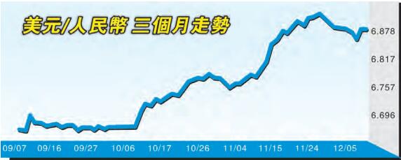 就人民幣明年走勢,瑞銀財富管理大中華區的投資總監及中國首席經濟學家指出,人民幣貶值受美元強勢影響,但新的財政刺激政策支持增長的同時也會推高通脹,明年美國通脹升幅可能超於加息幅度,實際利率下行,使美元強勢受到遏抑,今年底人民幣可望保持在6.8至6.9,明年才步入7時代。