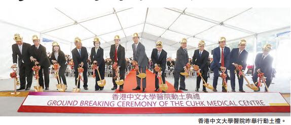 獲香港賽馬會慈善信託基金撥捐13億港元,作為部分興建費用的香港中文大學醫院動土儀式昨日舉行,出席嘉賓包括食物及衛生局局長高永文、衛生署署長陳漢儀及中大校長沈祖堯等。馬會主席葉錫安表示:「是次馬會撥捐13億港元,是馬會在醫療方面歷年來最大的單一捐款,充分顯示馬會對促進本港市民健康及福祉的承擔。我們很高興參與此重要的計劃,為廣大市民提供可負擔的醫療服務,同時紓緩公立醫院服務緊張的壓力。此外,香港中文大學醫院亦可與現時教學醫院的設施互相補足,加強本地專業醫護人員的培訓。」