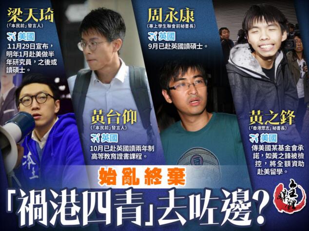 原標題:“禍港四青”都在英美找出路 港媒:禍港之人早已鋪好退路