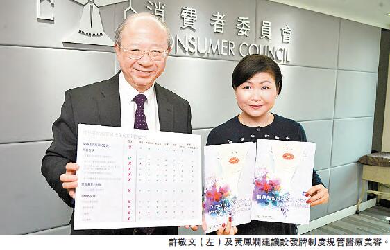 消委会宣传及社区关系小组主席许敬文表示,虽然政府有行政指示其中15项高风险「医疗美容」程序须由注册医生或牙医进行,但成效不大,加上目前香港并没有规管「医疗美容」的特定法例,消费者与业界对「医疗美容」的服务范围没有统一界定,比起其他司法管辖区都落后,建议政府清晰定义「医疗美容」,为消费者保障奠定法理基础;引进牌照制度,监督服务质素;订立资历标准,确保专业水平;设定仪器注册及事故呈报机制,监察仪器安全性;设立独立、据实证的资讯与建议,方便消费者作出知情选择;要求提供「医疗美容」服务前,徵求书面同意,保消费者信心;规管具误导性的广告;提供强制性冷静期,阻止不良销售手法,以及透过调停与仲裁排解纠纷及补偿机制,提供切实可行的方法,解决消费纠纷。