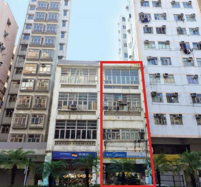 圖:荔枝角道舊樓有待確定其歷史建築物的評級,紅線框為今次出售的169號