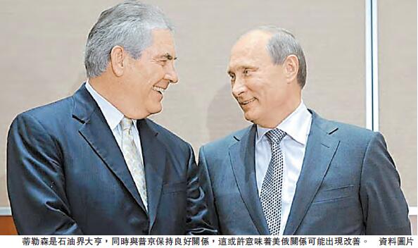 【香港商報網訊】埃克森美孚董事長兼CEO蒂勒森,被美國候任總統特朗普正式提名為美國下一任國務卿,終結束了各界持續數周的多方揣測。消息指出,現年64歲的蒂勒森已經為俄羅斯商業協議進行了談判工作,這將使美國得以和俄總統普京進行合作。然而,政界中不少人對這位商業領袖成為美國最高級外交官已公開表示了不安,因為蒂勒森和普京20年前就私交甚好。
