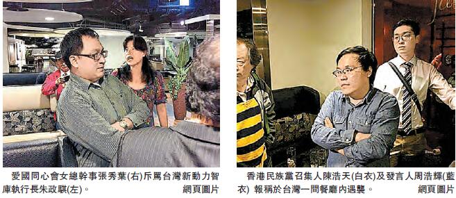 【香港商報网訊】記者周偉立報道:鼓吹「港獨」的「香港民族黨」召集人陳浩天及發言人周浩輝在台灣遇襲。據當地傳媒報道,兩人前晚於台北一餐廳偕友人用膳及接受訪問後擬離開時,被同場一批愛國同心會成員破口大罵指斥「搞港獨台獨」、「漢奸賣國」,眾成員更一擁而上施襲。陳浩天及周浩輝並無大礙,事後到當地警察局錄取口供。