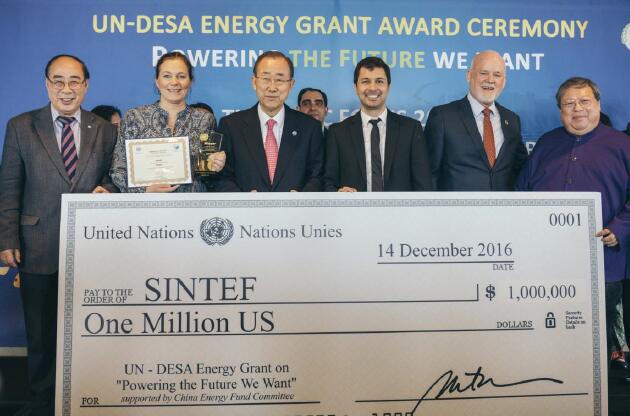 首個有中國民間機構參與並贊助的「為了我們希望的未來」聯合國能源大獎,於當地時間12月14日在紐約聯合國總部舉行第二屆頒獎禮,本屆評選主題為「可持續交通能源」。來自挪威的科技工業研究所(SINTEF)獲得大獎,并獲頒獎金一百萬美元,用以推動研究所在中東及北非地區開展的太陽能電動渡輪計劃。