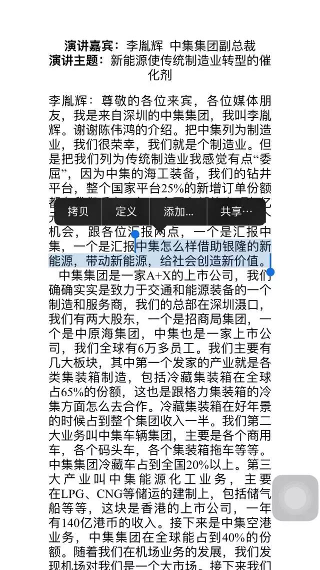 接下來是中集集團副總裁李胤輝的演講,也只是說“中集怎么借助銀隆的新能源”,壓根沒提投資入股的事。