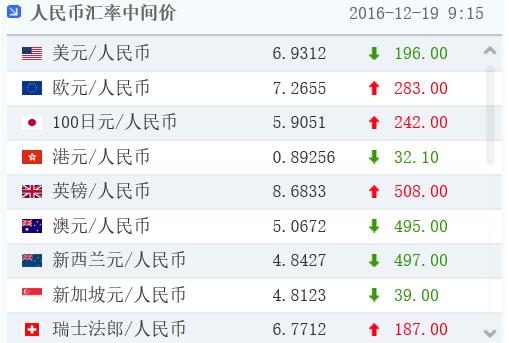 【香港商报网讯】12月19日消息,今日人民幣(6.9444, -0.0125, -0.18%)中間價報6.9312,較前一交易日大幅升值196點,為近兩周最大升幅,同時也結束了此前連續三個交易日的下跌。受中間價大幅上調的影響,人民幣即期匯率高開收復6.95關口,目前在6.94一線窄幅震蕩。盡管中間價告別三連跌,但仍徘徊在2008年6月以來的低位。市場普遍認為,人民幣匯率短期可能迎來喘息機會,中長期依然承壓。隨著新年新增個人換匯額度的重新釋放,對人民幣兌美元匯率的考驗還將繼續。
