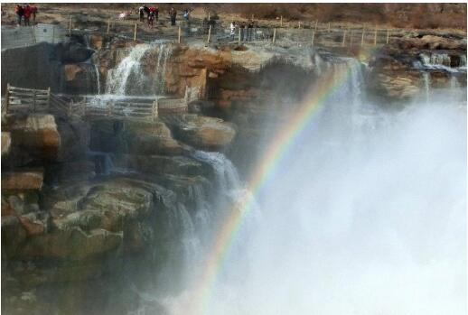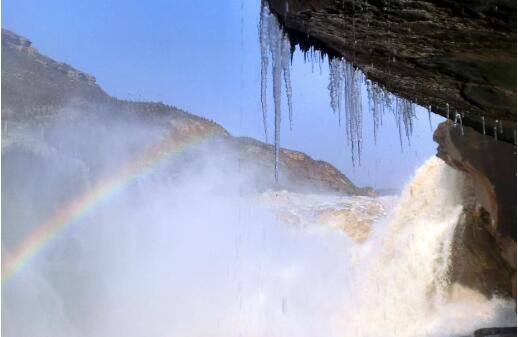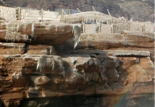受持續降溫影響,位於晉陝大峽穀之間的黃河壺口瀑布景區呈現冰掛美景,與壺口瀑布“通天彩虹”的美景相互映襯、相得益彰。 央視記者裴大偉 攝影張建良