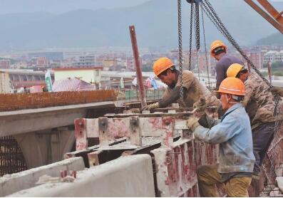 福清市環城路項目總投資超過四十億元,總長二十八公里,是該市最重要的民生項目之一。圖為昨日,建設者正在加緊施工。鐘鷹攝