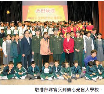 【香港商報網訊】新華社記者董方奇報道:動人的歌曲,優美的舞蹈,爽朗的笑聲……這場景來自駐港部隊「關愛幼童」和「慰問長者」活動現場。昨日駐港部隊共60名官兵先後探訪心光盲人學校和耆康會群芳念慈護理安老院,為那裏的兒童和老人送去新年祝福。