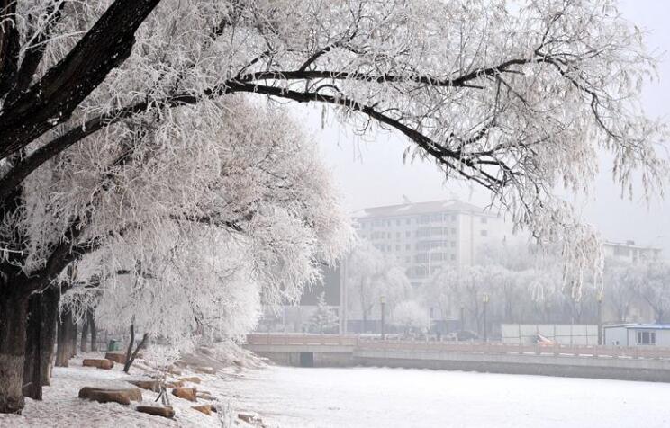 19日,黑龍江省牡丹江市、吉林省吉林市現霧凇美景,城市在霧凇的裝扮下呈現別樣風情,銀裝素裹、玉樹瓊枝,吸引眾多遊客前來觀賞。