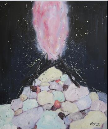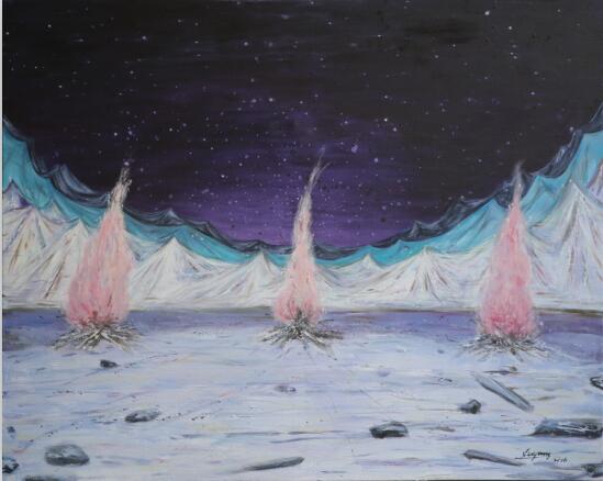 《火起时有烟花飞舞》 布上油画