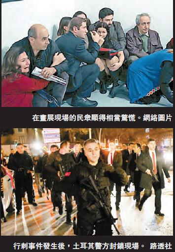 當天,刺殺事件發生地、安卡拉錢卡亞現代藝術展覽中心被警方封鎖,一輛“犯罪現場調查”車停在中心門口。記者在現場看到,鄰近藝術展覽中心的美國駐土耳其大使館大門緊閉。