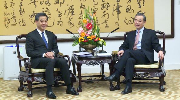 特首梁振英、特首辦主任邱騰華及數名隨行人員上午八時半抵達外交部,與外交部部長王毅舉行工作會晤。王毅首先代表外交部對特首一行的到訪表示歡迎。王毅指出,特首年輕有為,愛國愛港,出任行政長官之後,雖然面臨很複雜的內外環境,但仍然堅定的奉行「一國兩制」政策,為國家和香港做出了大量有益的工作,傾注了自己的心血,得到了中央政府的充分肯定。外交部雖然不主管港澳事務,但外交部全體同仁都非常關心及支持特首工作,感謝特首做出的貢獻。