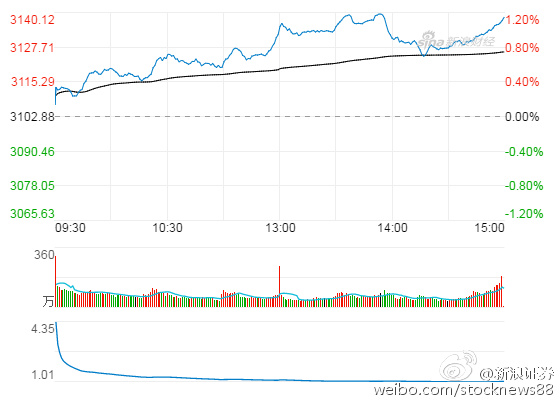 截至收盤,滬指報3138點,漲1.15%;深成指報10313點,漲0.67%;創業板報1991點,漲0.47%。兩市成交較昨日略有放大。