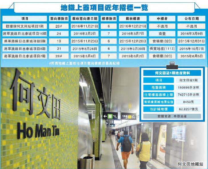 【香港商報網訊】記者韓濠昕報道:港鐵(066)何文田站1期物業發展項目,在昨日下午截標,項目共接獲6份標書,包括長實(1113)、會德豐(020)、新世界(017)、信置(083)和新地(016)等。項目預期2022年至2023年完成,估計提供約800至1000個單位,項目早前收到28份發展意向書,最終只收到6份標書,反應略較市場預期冷淡,料由港資地產商中標機會較高。