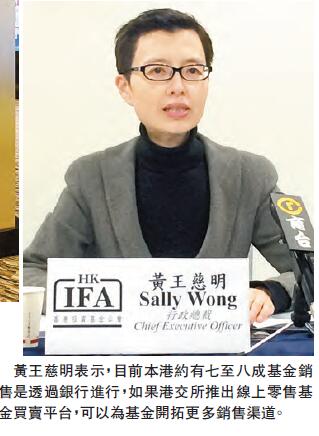 【香港商報網訊】記者莊海源報道:香港投資基金公會(下稱基金公會)的調查顯示,若港交所推出一個線上平臺供投資者買賣基金,81%的內地投資者表示會有興趣使用該平臺,51%香港投資者會使用。受訪者普遍相信,該線上平臺買賣基金的傭金,會較傳統渠道低至少30%至50%。投資基金公會行政總裁黃王慈明表示,目前本港約有七至八成基金銷售是透過銀行進行,如果港交所推出線上零售基金買賣平臺,可以為基金開拓更多銷售渠道。