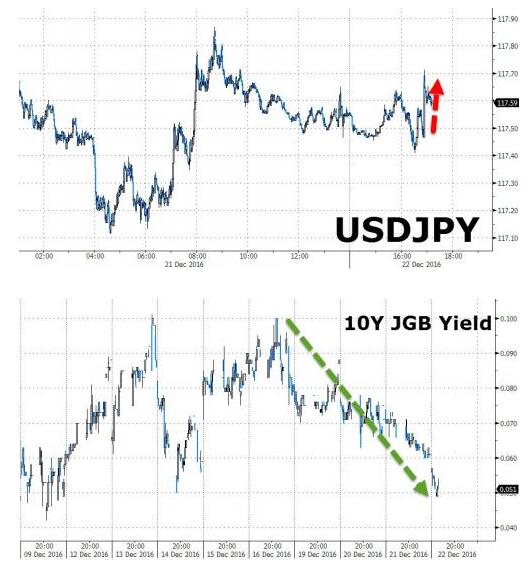 自11月中旬因“特朗普效應”持續發酵升回正區間以來,日本10年期國債收益率節節攀升,現已升近0.08%。為了利用此價格低點,日本財政部將減少20年期、10年期、5年期和1年期的國債發行規模,同時提高40年期規模,由本財年2.4萬億日元提升至3.0萬億日元,以更好地利用在日本央行寬松貨幣政策下帶來的持續低債券低收益率。