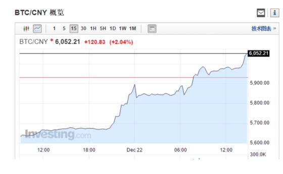 在昨夜比特幣/美元突破800美元之后,今日比特幣/人民幣也沖破6000元大關,暌違三年再度站上高位。