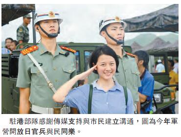 「回首過去的一年,傳媒界的朋友們一如既往地關注駐軍事務、支援駐軍工作,對駐軍組織的『香江衛士—2016D』聯合實兵演習、軍營開放、香港青少年軍事夏令營、建軍節招待會、第19次建制單位輪換等多項活動,進行了全面、客觀的報道,成為香港市民了解駐軍依法履行防務職責情況的重要途徑,增進了香港社會各界對駐軍事務的關注和理解。我們對此表示衷心感謝!」