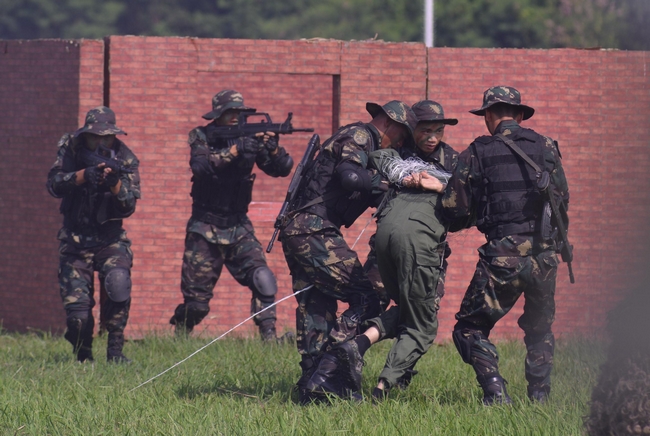 保安局建议修订条例加强本港反恐措施,图为驻港解放军进行反恐演练。