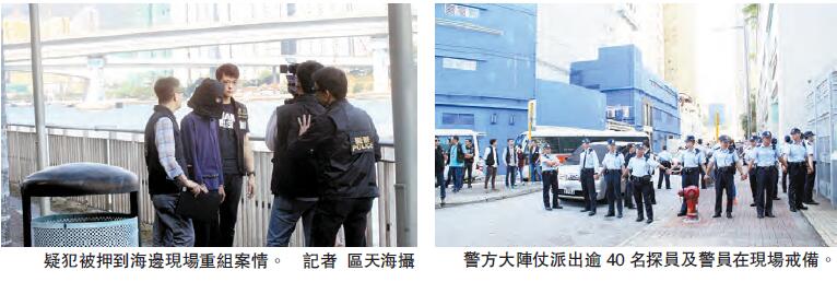 警方昨日中午1時許,將青衣長環街及青衣南橋慢線封閉,以調查該宗案件。期間探員將黑布蒙頭被捕男子押解到青衣海旁調查,逗留約半小時后離開。同時,警方小艇在青衣南橋橋底蒐證,包括派出「水鬼隊」蛙人落海搜索,行動至下午約2時完結,案件轉交葵青警區重案組第1隊接手調查。在案情重組期間,現場有逾40名重案組探員及警員駐守,及維持秩序。消息指,警方擔心女死者家人痛失愛女情緒激動,有機會到現場影響重組進行。
