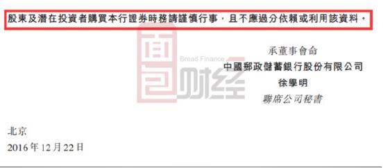 在公告結尾,郵儲銀行還特意提醒投資者:股東及潛在投資者購買本行證券時請謹慎行事,且不應過分依賴或利用該等資料。公告的截圖如下: