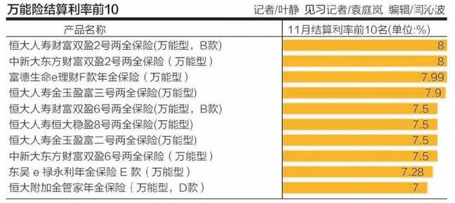 希望通過數據窺探一年中,萬能險產品發展的“跌宕起伏”。具體而言,11月結算利率最高的10款產品恒大人壽占據8席,而前海人壽的平均收益率最高,同時,21世紀經濟報道記者發現,多家保險公司開始停售萬能險產品。