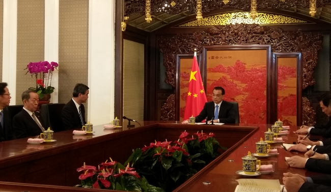 國務院總理李克強今早上十時左右在中南海紫光閣接見赴京述職的香港特別行政區行政長官梁振英。李克強表示,一年來你帶領特區政府勤政務實,努力發展經濟,在全球經濟不確定因素增加情況下,實現穩步增長,并推動創業創新,特區政府立足國家發展戰略制定規劃,加強與內地相應的合作,中央政府對你和特區政府的工作高度肯定。