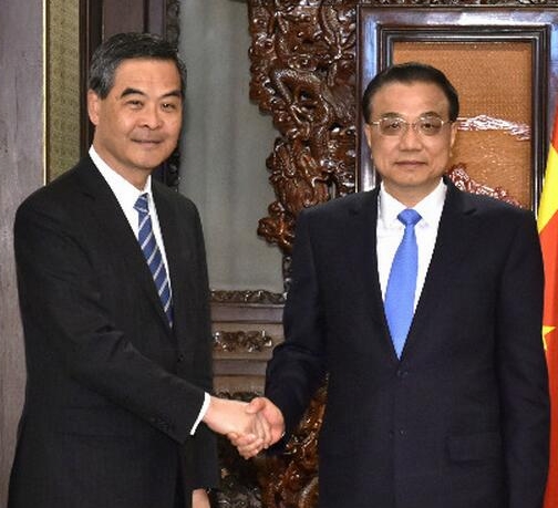 李克強重申,中央會繼續堅持“一國兩制”,“港人治港”、“高度自治”方針,嚴格按照憲法和基本法辦事,全力支持你和特區政府施政,希望特區政府在國家發展戰略和十二五十三五一帶一路推進過程當中,主動選擇獲得機遇,中央政府也會制定十三五規劃專章考慮香港。相信在中央政府支持下,香港有能力有智慧,抓住機遇,同發展,共繁榮。