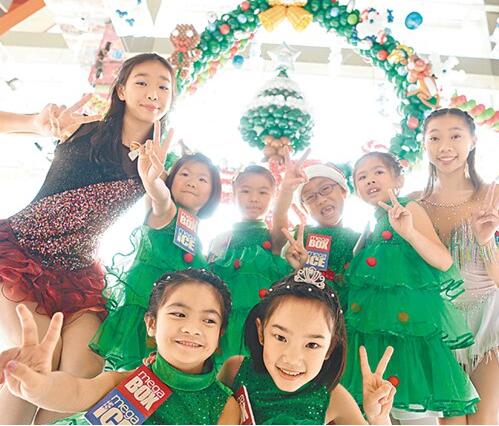 MegaBox全亞洲最大空中圣誕花環,由世界氣球大賽冠軍設計。(香港《文匯報》/梁祖彝 攝)