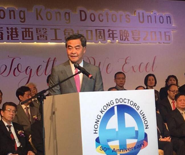 圖:梁振英於聖誕夜出席香港西醫工會50周年慶典晚宴