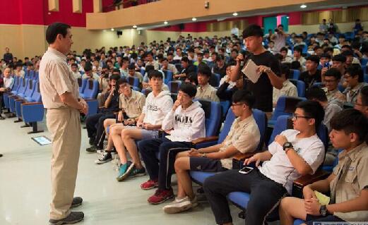 马英九26日与中学生互动。台湾“中央社”