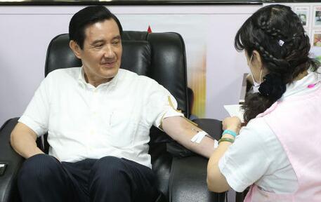 马英九捐血资料图