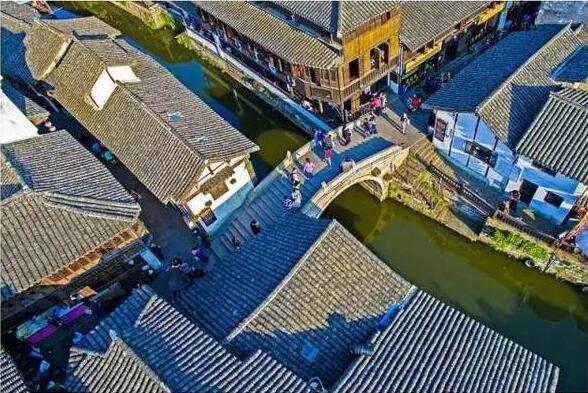 老街南北長達1.5公里,巷道與建筑兩側早已斑駁的山墻形成“高山空巷”的意境,洪橋港、包橋港、后市河和東橫港四條河道兩橫兩縱,把古鎮劃分為“井”字型格局。