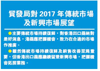 潘永才又指出,隨著美國總統大選塵埃落定,以及憧憬特朗普的經濟推動計劃和隨后的股市上升,消費者更願意消費。他認為,特朗普上場后引發中美貿易戰機會不大,因為特朗普競選時的言論在上場后未必會落實;加上中國和美國互相是最大的貿易合作夥伴,在國際事務上都經常合作。而且,美國總統的權力亦受到國會的制衡,共和黨議員以商人為主,未必會支持特朗普打壓中國的措施。不過,他也不排除特朗普會實行一些措施針對中國進口產品。歐洲方面,雖然歐洲面臨政局不穩、恐怖主義蔓延、難民危機等不明朗因素,但經濟有緩慢復蘇的跡象,他預計明年復蘇將會持續。