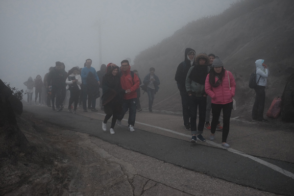 由凌晨2至3時開始,通往大帽山頂的小路上,陸續迎來了一批又一批穿上羽絨、厚衣的市民,他們都是自發駕車而來,再徒步上山頂,觀看2017年出現香港的第一道晨光。