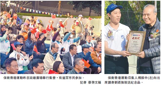 保衛香港運動牽頭,聯同匯賢起動、新年代、愛港之聲、中華文化教育基金會等舉辦「團結好香港」集會,吸引逾百人參加,并揮動手中國旗與區旗,高叫愛國愛港口號。劉迺強發言形容,新一年將會是天下大亂的一年,美國由於新總統上台,會有大量不穩定因素,出現政治甚至是經濟危機,牽連歐洲一併受影響,唯獨中國會獨善其身,即使經濟放緩,增長仍比其他國家快,而香港有賴祖國,相信亦不會太差。
