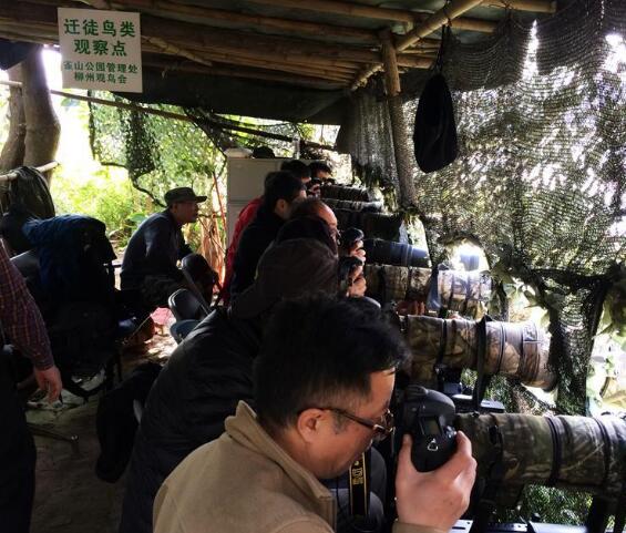 元旦假期,廣西柳州市區雀山公園雀湖邊上一個綠色的偽裝棚,每天都被來自南寧、桂林、深圳等地的10多名影友擠得滿滿當當,這片濕地是柳州觀鳥會的“遷徙鳥類觀察點”。