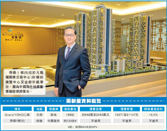 除了新地,中國海外(688)同日亦舉行記者會,會上,中國海外地產董事總經理游偉光表示,位於啟德的「港人港地」項目「啟德1號(II)」最快周四開價,首批推售至少兩成單位,定價將參考周邊地價等各種因素而決定。他又指出,雖然同一時間有兩個大盤推售,但認為對項目購買力影響不大。