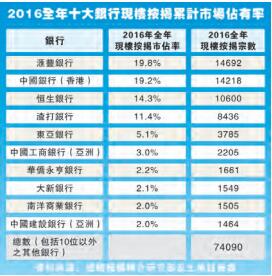 【香港商報网訊】記者曾浩榮報道:2016年銀行現樓及樓花按揭全年數字出爐!綜合中原按揭經紀及經絡按揭轉介資料,在政府辣招持續及美國加息陰霾的夾擊下,去年現樓及樓花按揭宗數,分別按年跌逾13%及跌逾三成,創多年新低。按銀行統計,匯豐銀行成為2016年按揭雙冠軍,市場占有份額約二成。