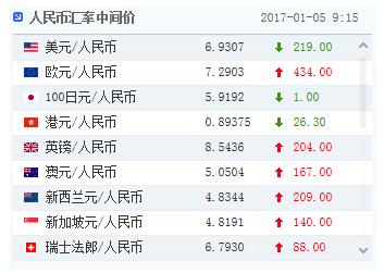 新浪財經訊 1月5日消息,早間外匯交易中心發布公告,人民幣(6.9190, -0.0131, -0.19%)匯率中間價報6.9307,較前一交易日大幅升值219個基點。此外,離岸人民幣隔夜存款利率一度飆升16.5個百分點,至2016年1月以來的高點30%。美元兌離岸人民幣明日次日遠期點飆升至2016年1月以來的最高水平125。