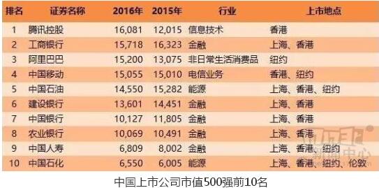 隨著2016年股市的收盤,東方財富近日公布了中國上市公司市值500強排名榜單。騰訊力壓一眾國企強勢登頂;而常年高居上市公司市值第一的工商銀行,僅位于第二。