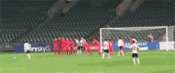 进球后的广东队没有过多的庆祝,而是由汪嵩带领集体向球场内的五星红旗敬礼。
