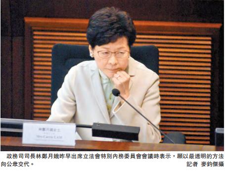 林鄭明言,政府在簽訂備忘錄後,非常樂意、願意以最透明度的方法向大家交代:「我是抱以一個很高透明度、負責任和誠懇的態度向立法會議員交代、向公眾解說。」她強調,將於下星期一起進行的6星期公眾諮詢不是「補鑊」、後知後覺,而是當局原本計劃的一部分。