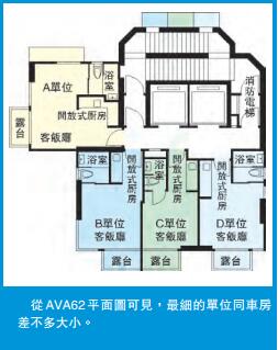 事實上,「加多利軒」浴室設計雖然怪誕,但絕非市場上唯一的怪設計,資深投資者盧華家族旗下MT Sisters Limited持有的馬頭角「AVA 55」,早前開放示範單位,便試圖「化腐朽為神奇」,將該盤的納米戶變成複式單位,以增加賣點。當時展示了全盤最細166平方呎的開放式B室模擬設計圖,據圖片顯示,發展商模擬在單位內加建閣樓,以提升空間實用性,一旦買家日後「照辦煮碗」,估計有機會成為全港最細複式單位。