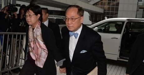 曾蔭權面對首次被引用的行政長官接受利益,及兩項藉公職作出不當行為等罪,全部表示「不認罪」,案件今早10時恢復聆訊,曾氏夫婦早上8點半乘七人車扺達法院。