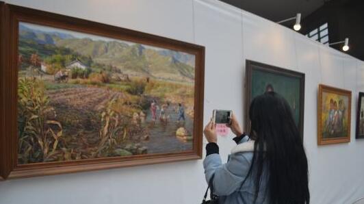 400余幅當代朝鮮油畫精品亮相江西南昌,吸引參觀者觀看。 吳鵬泉 攝