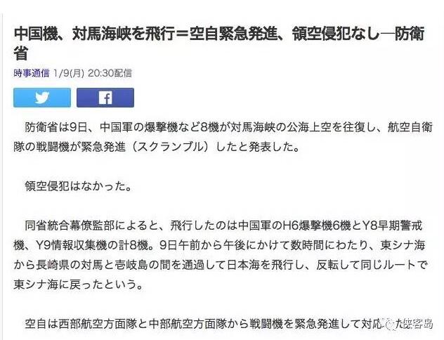 到下午,日本防衛省正式發布消息:中國8架大型飛機組成的編隊穿越對馬海峽,進入日本海!