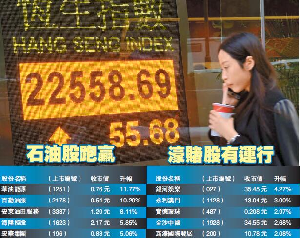 濠賭股及石油股跑贏